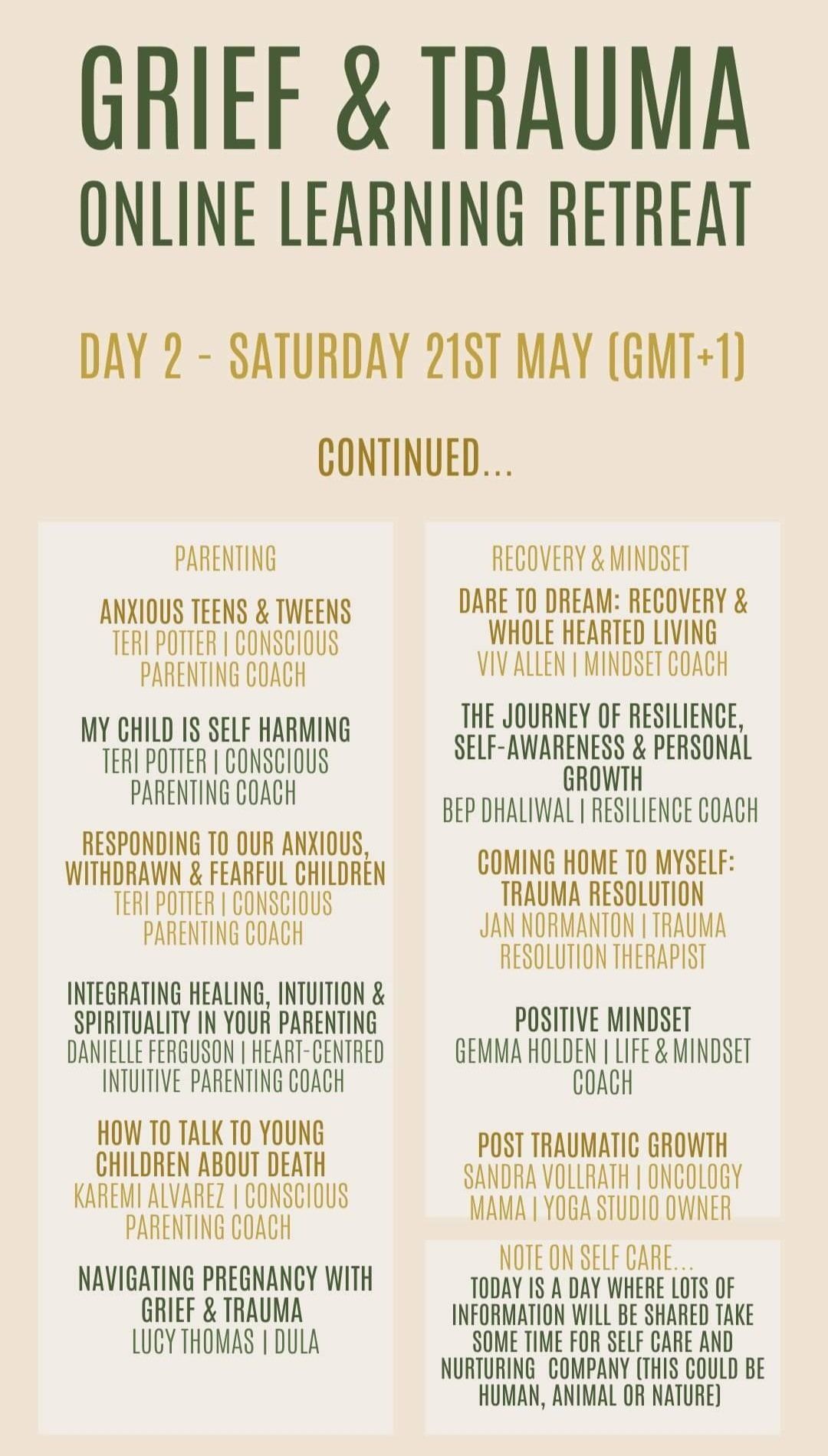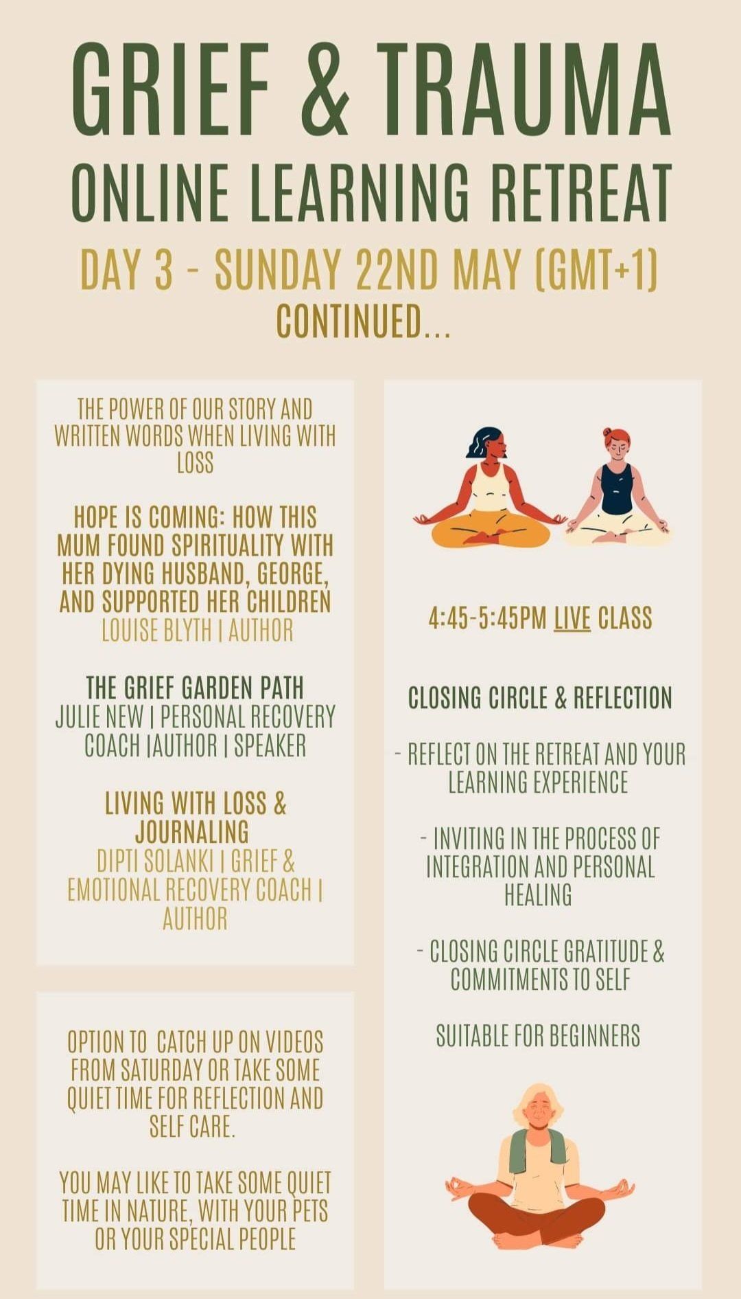 Programme Details for Online Learning Retreat for Trauma & Grief, May 2022